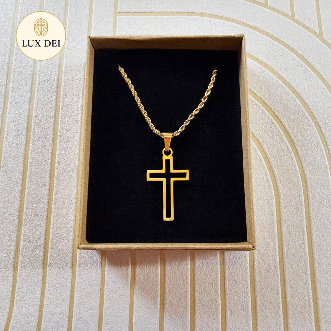 “Une croix épurée, symbole de foi et de lumière. L’élégance du silence, la puissance du signe.”